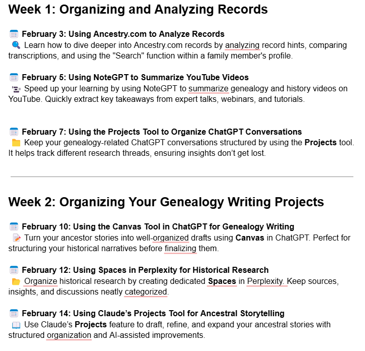 A. I hope that you can follow this process if you are planning to step up your use of AI in genealogy, as well as share what you have learned in your video tutorials on your YouTube channel.