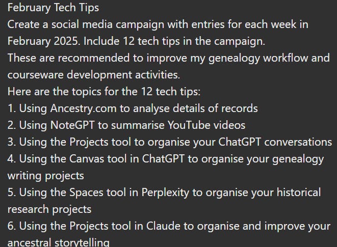 What other types of video tutorials would you like to see on my YouTube channel? Note: I specialise in the use of AI and tech tools in Genealogy.